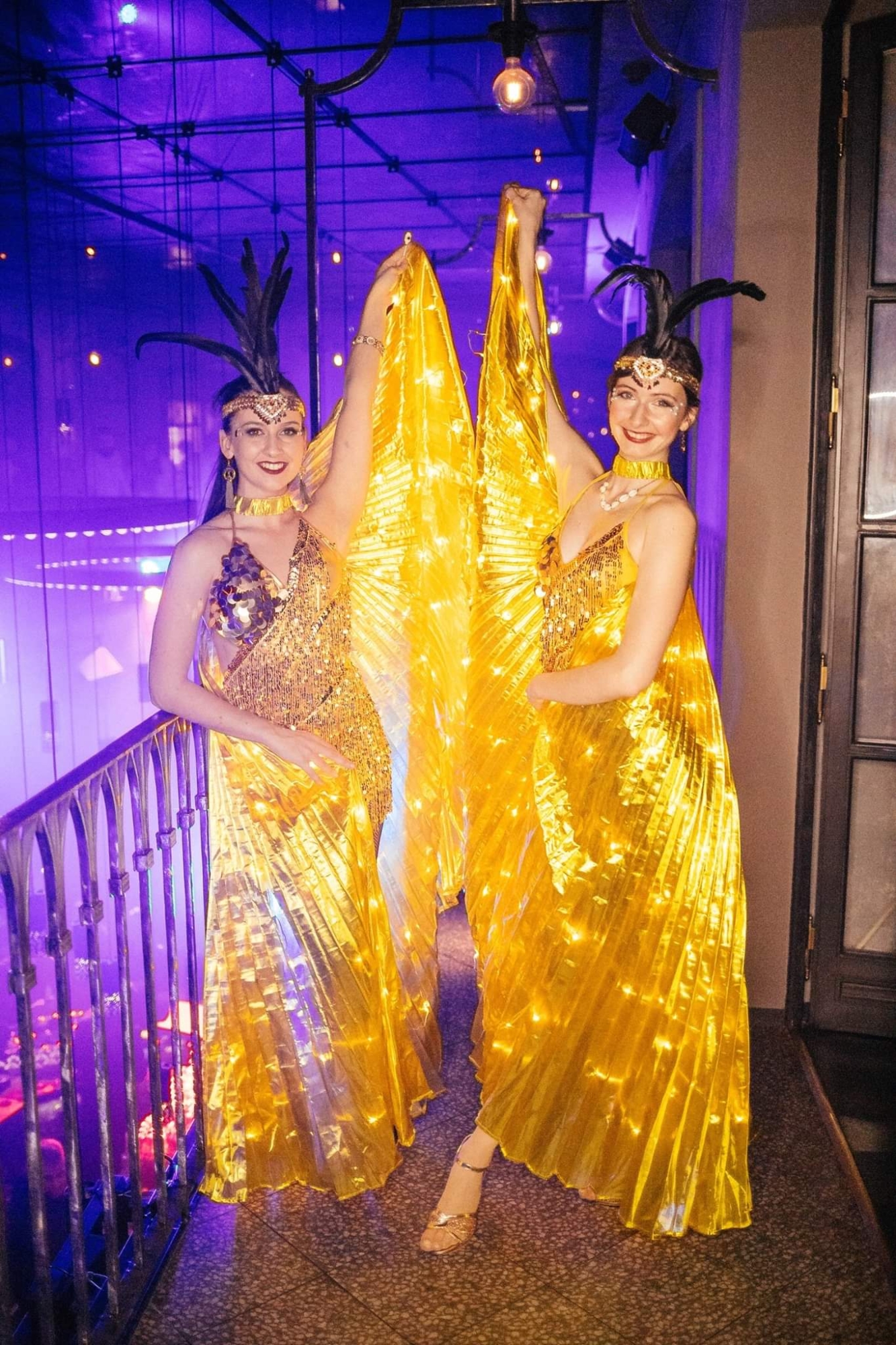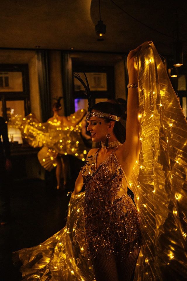 „The Great Gatsby“ – světoznámý film „Velký Gatsby je oblíbené téma firemních večírků a oslav. Show laděná do 30.let avšak v moderním a zcela originálním provedení. Do charlestonových a swingových choreografií zapojujeme zlatá světelná křídla spolu s přepychovými kostýmy. Přeneste se s námi na parket filmových hvězd. V rámci vystoupení zapojíme na přání klienta i diváky formou výuky či taneční soutěže.