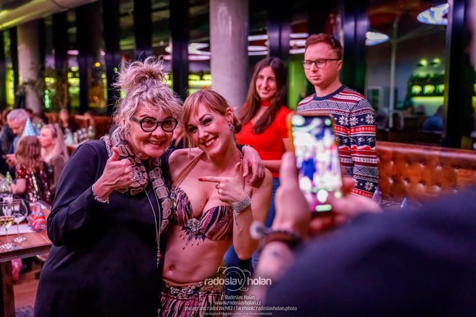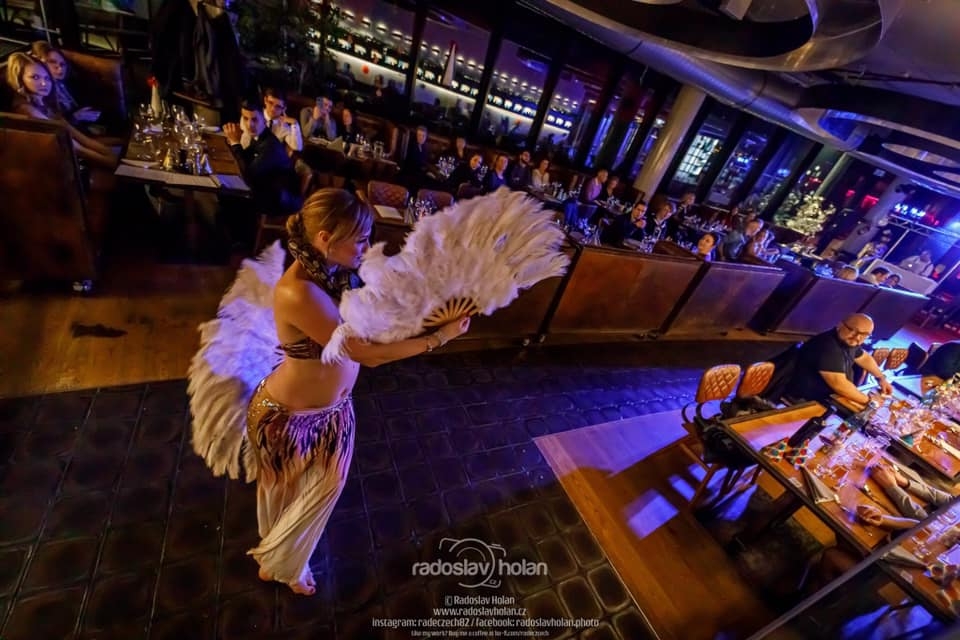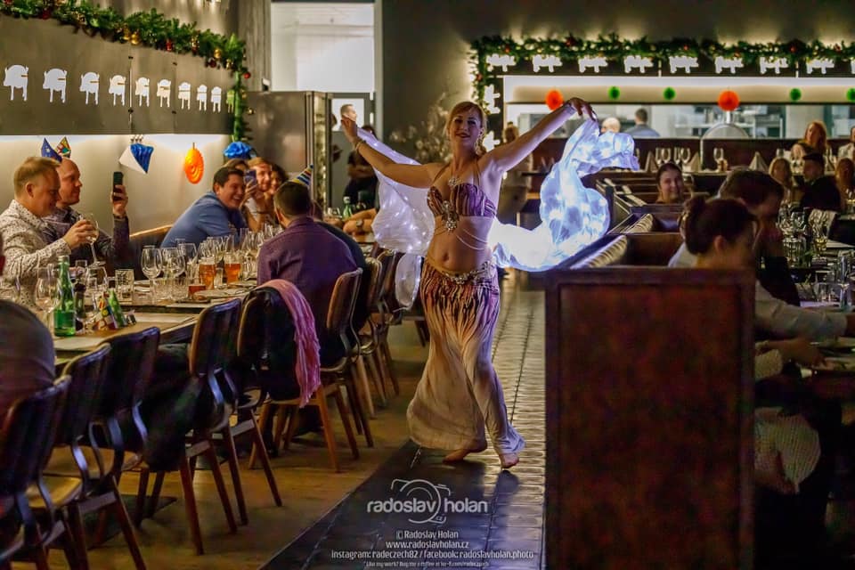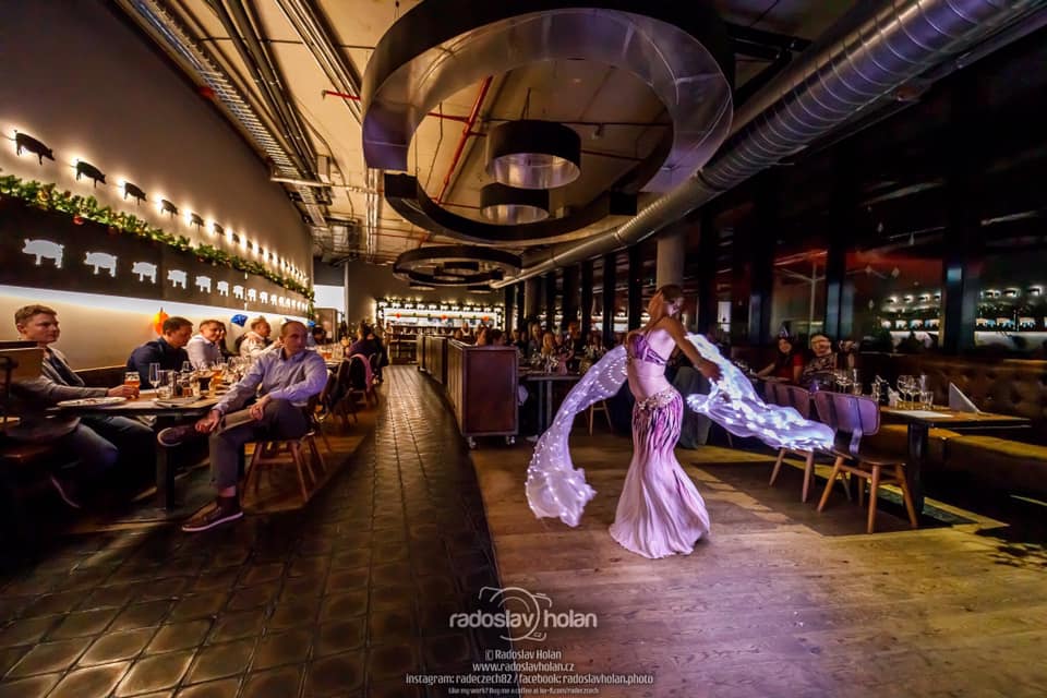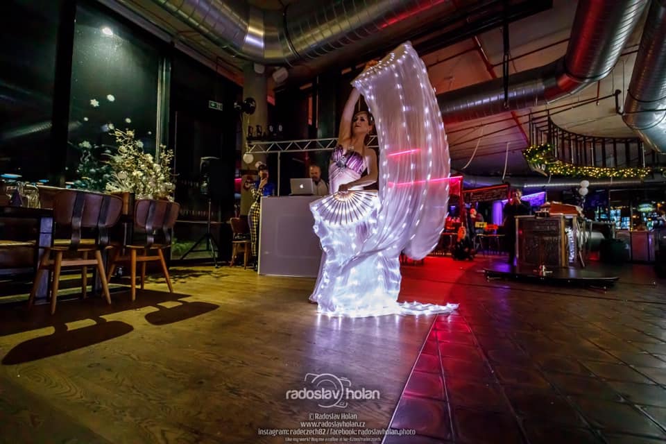 Světelná show a svůdné břišní tance. Umělecké představení v podání naší mistryně České republiky v klasickém břišním tanci a egyptském folkloru – Shanelah. Tato profesionální tanečnice vás oslní ladnými pohyby v rytmu orientu i moderních skladeb. Shanelah se tanečnímu umění věnuje řadu let a mimo jiné se může pochlubit i několikaletou spoluprací s Danem Nekonečným. Mezi její specializaci patří klasický styl Egypta – tzv. Raks Sharki, drum sóla, šavle a ohnivé/světelné show. Při představení uvidíte světelná křídla, vějíře, závoje i možnost zapojení živého hada - v rámci vaší akce je možné uskutečnit focení s hadem a návštěvníky a odnést si tak jedinečný zážitek.